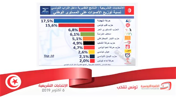 Législatives 2019 : le parti d’Ennahdha en tête suivi de Qalb Tounes de Nabil Karoui selon Sigma Conseil