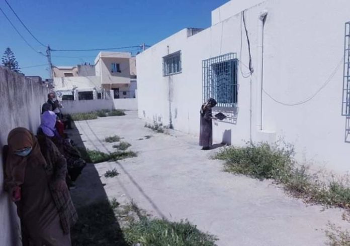 Tunisie-Tribune (la queue pour une consultation médicale) - Des patients de la cité de Zahrouni rassemblés, ce mardi 5 mai 2020, devant le dispensaire